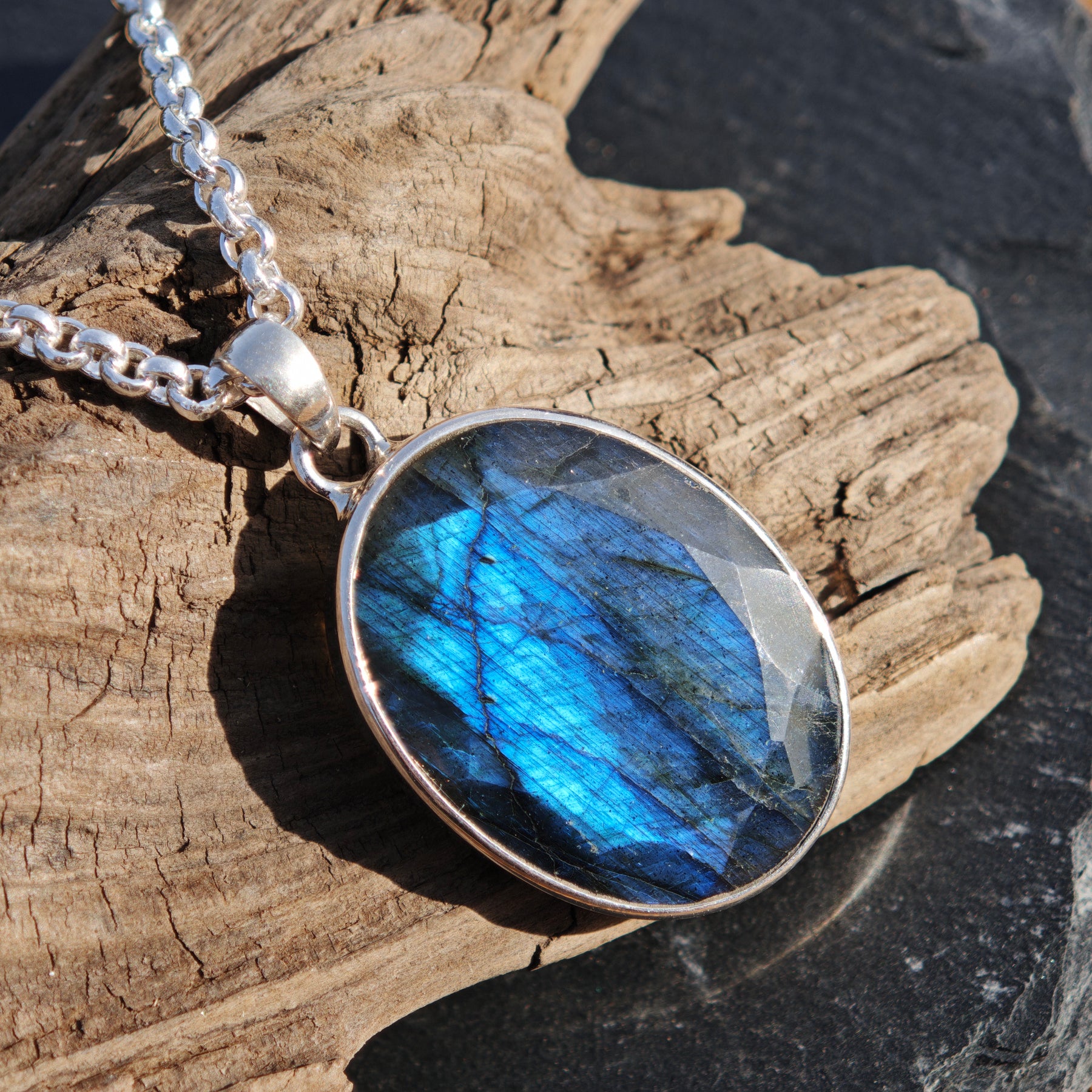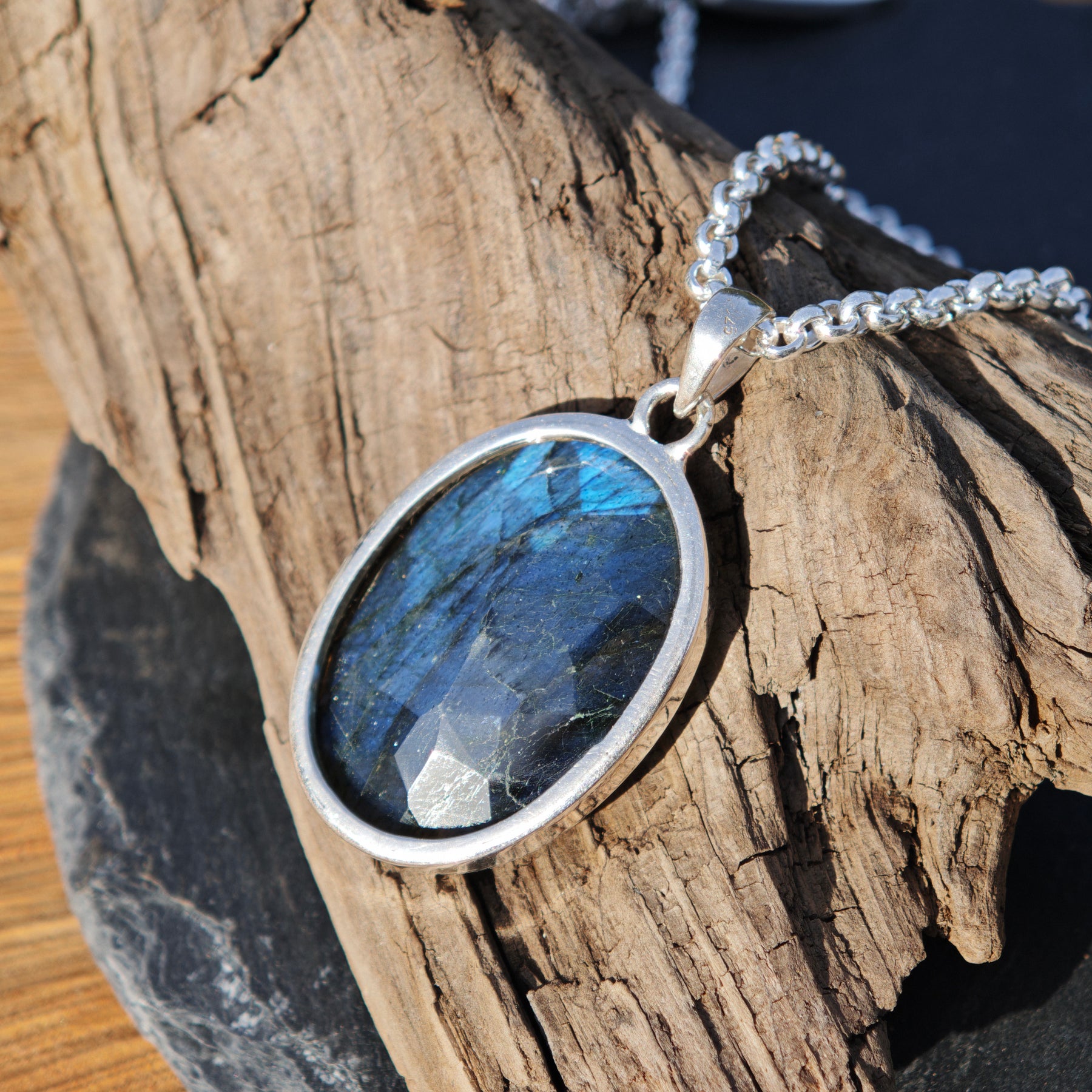 Labradorit aus Madagaskar in Extraqualität gefasst in massivem Silber 925