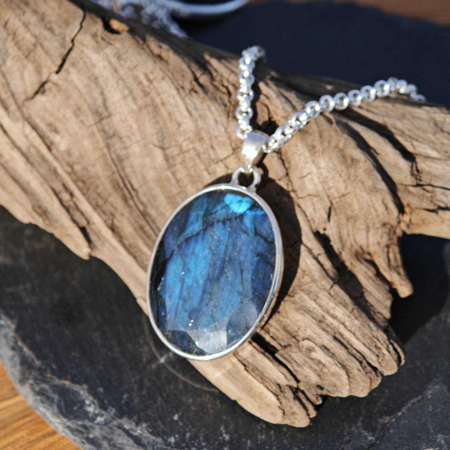 Labradorit facettiert oval Extraqualität gefasst in Silber 925