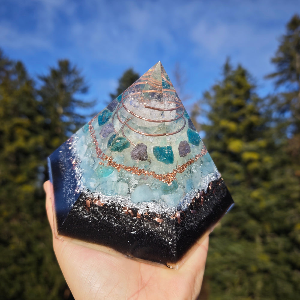 Alle Orgonite sind von Hand gemachte Unikate. Sie bestehen aus individuellen Edelsteinen und einer Orgonitmatrix. Dadurch wirken sie lichtbringend, ausgleichend und harmonisierend.