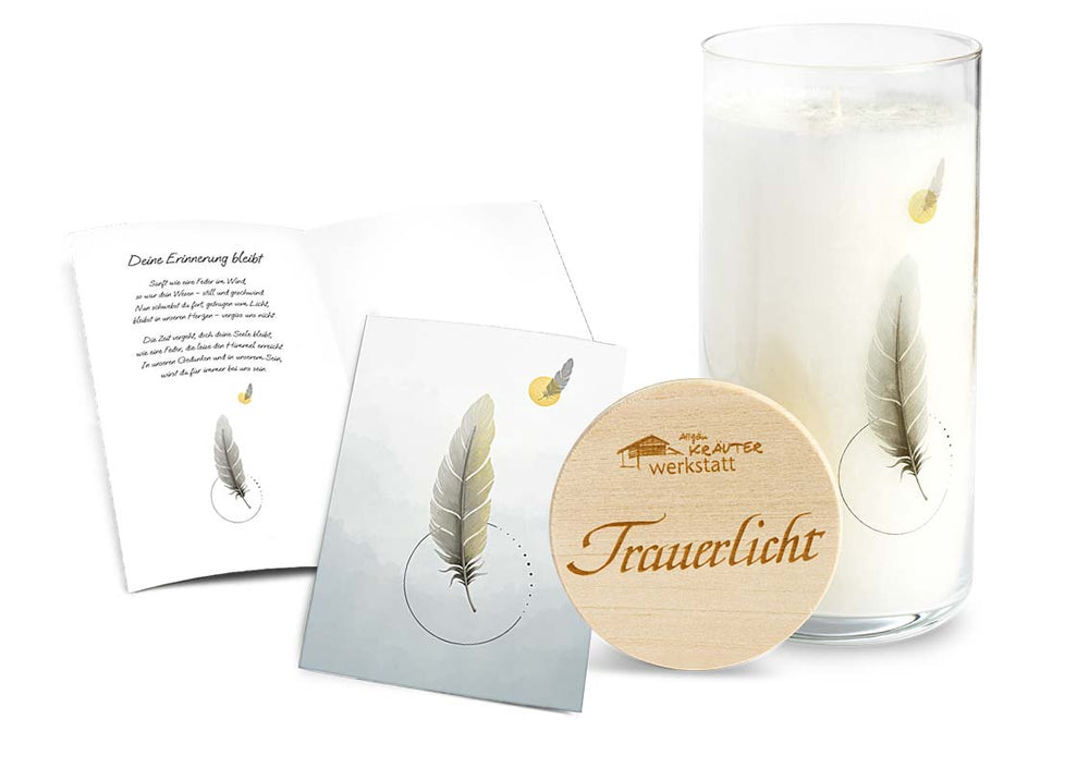 Beide Kerzen inklusive neutralem Begleitheft und Karte mit Beschreibung der Inhaltsstoffe im Kuvert.