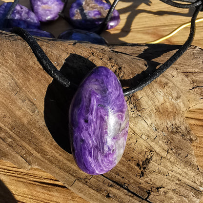 Charoit befreit vor Stress und schützt vor Überarbeitung. Er verleiht einem aber auch die nötige Zähigkeit, den Mut und die Entscheidungskraft einen gewählten Weg konsequent und diszipliniert zu gehen. Ausserdem hilft Charoit dabei sich von inneren Zwängen zu befreien und abzugrenzen.
