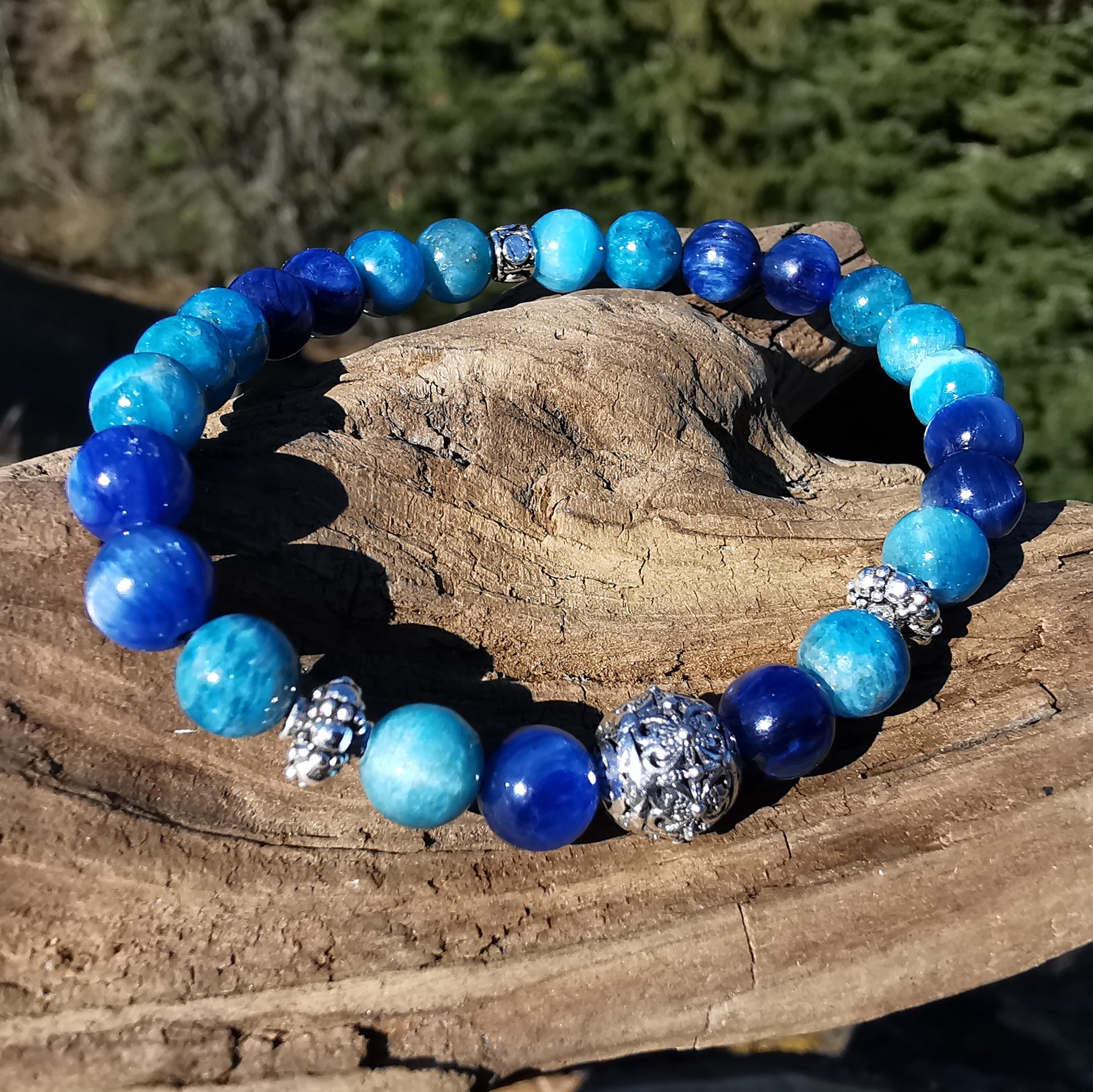 Edelstein Armband INNERE STÄRKE Kyanit Apatit S925 Kugel 5-7mm