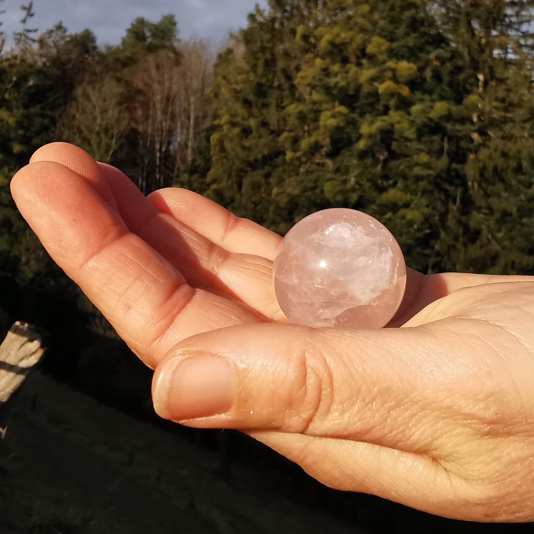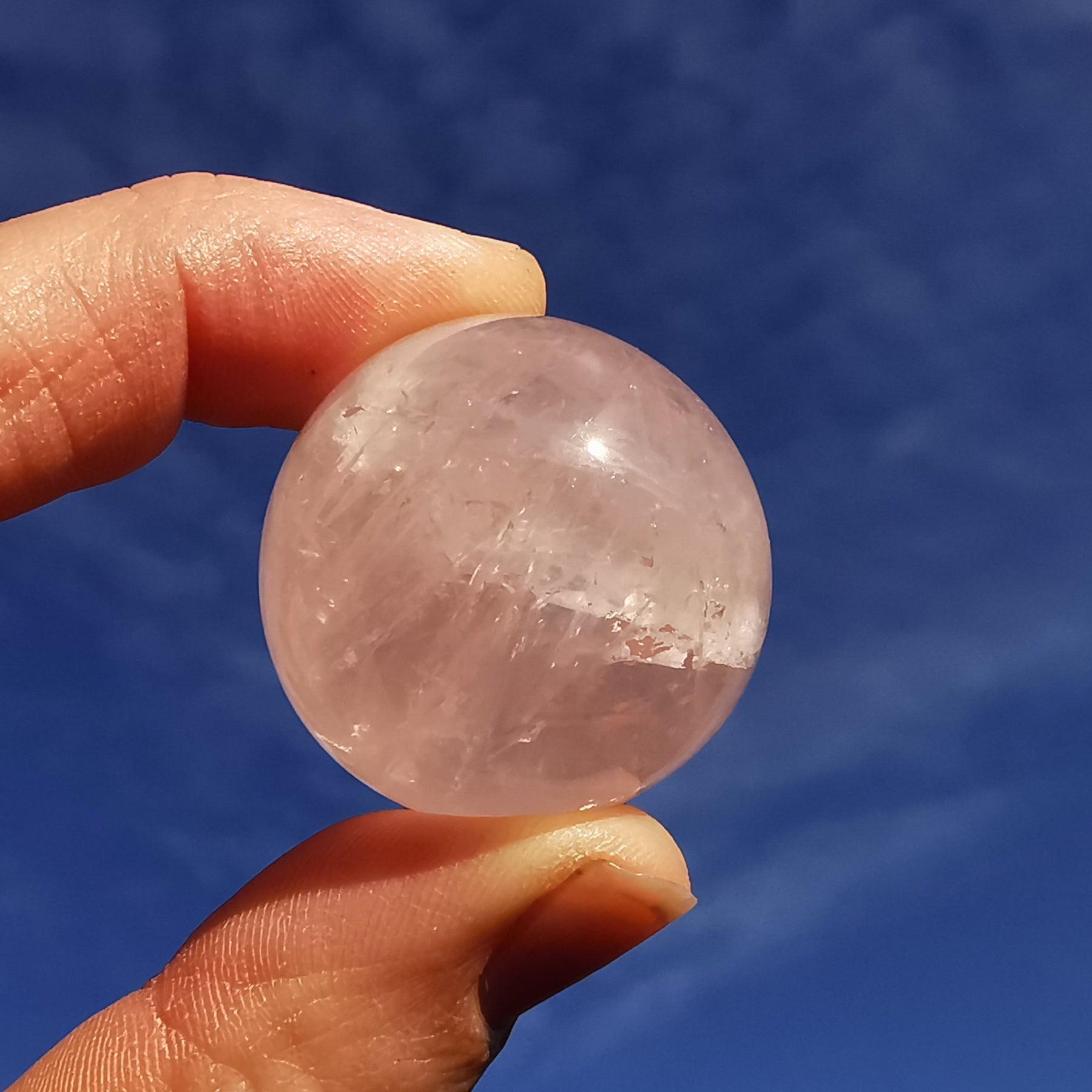 Sehr klare Rosenquarzkugel aus Madagaskar mit Regenbogeneinschlüssen