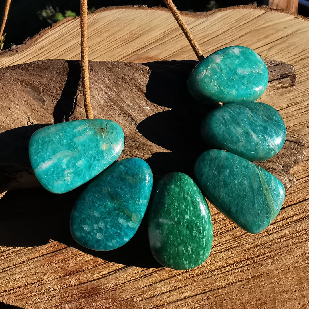Amazonit hilft dabei, sich gleichzeitig auf höhere spirituelle Ebenen und das Unbekannte einzulassen – und dadurch innere Grenzen zu überwinden. Durch seine besondere Energie wird der Zugang zu innerer Harmonie und Ganzheit erleichtert. Er unterstützt die Vereinigung innerer Gegensätze und fördert das Erleben und Bewahren reiner, kosmischer Liebe. Außerdem stärkt er die Fähigkeit, Liebe bewusst und offen auszudrücken. Mehr....