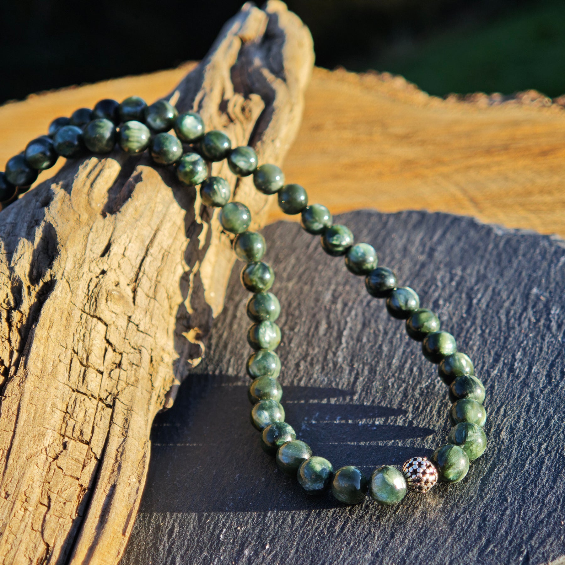 Edelsteinkette SEELENWACHSTUM Seraphinit 6mm Kugel S925