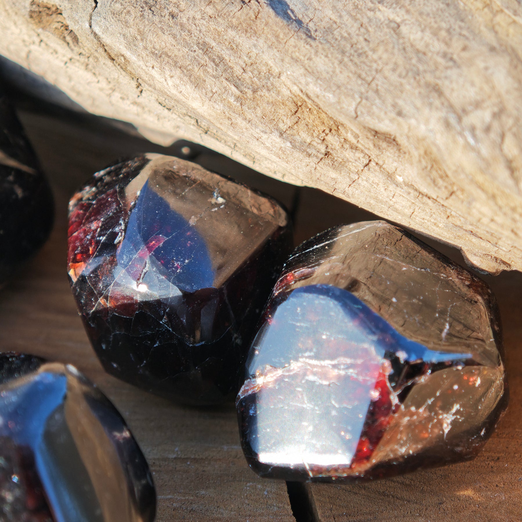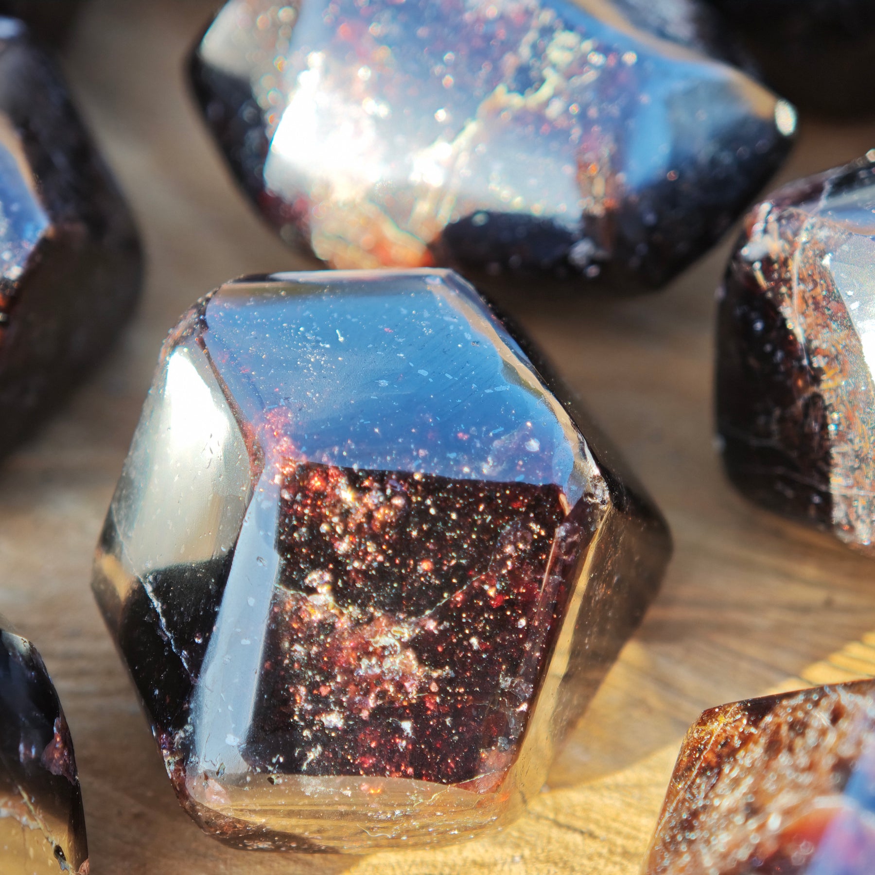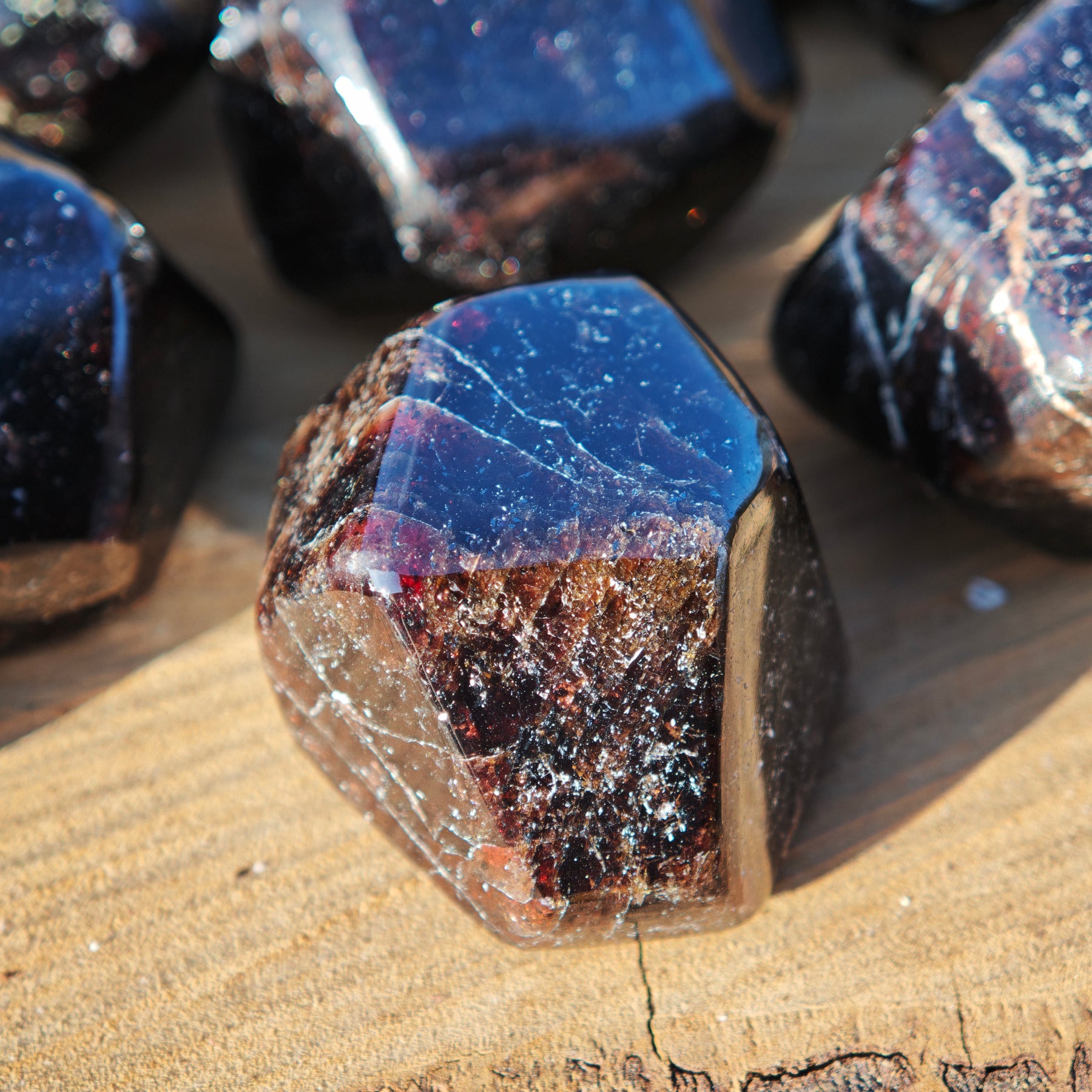 Natürlich gewachsene Granat-Kristalle, deren Flächen und Kanten liebevoll von Hand poliert wurden, ohne die ursprüngliche natürliche Form zu verändern!