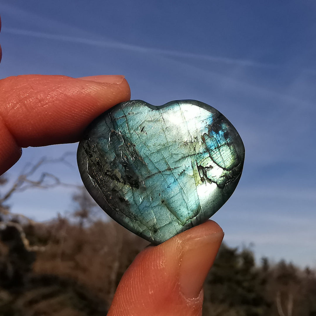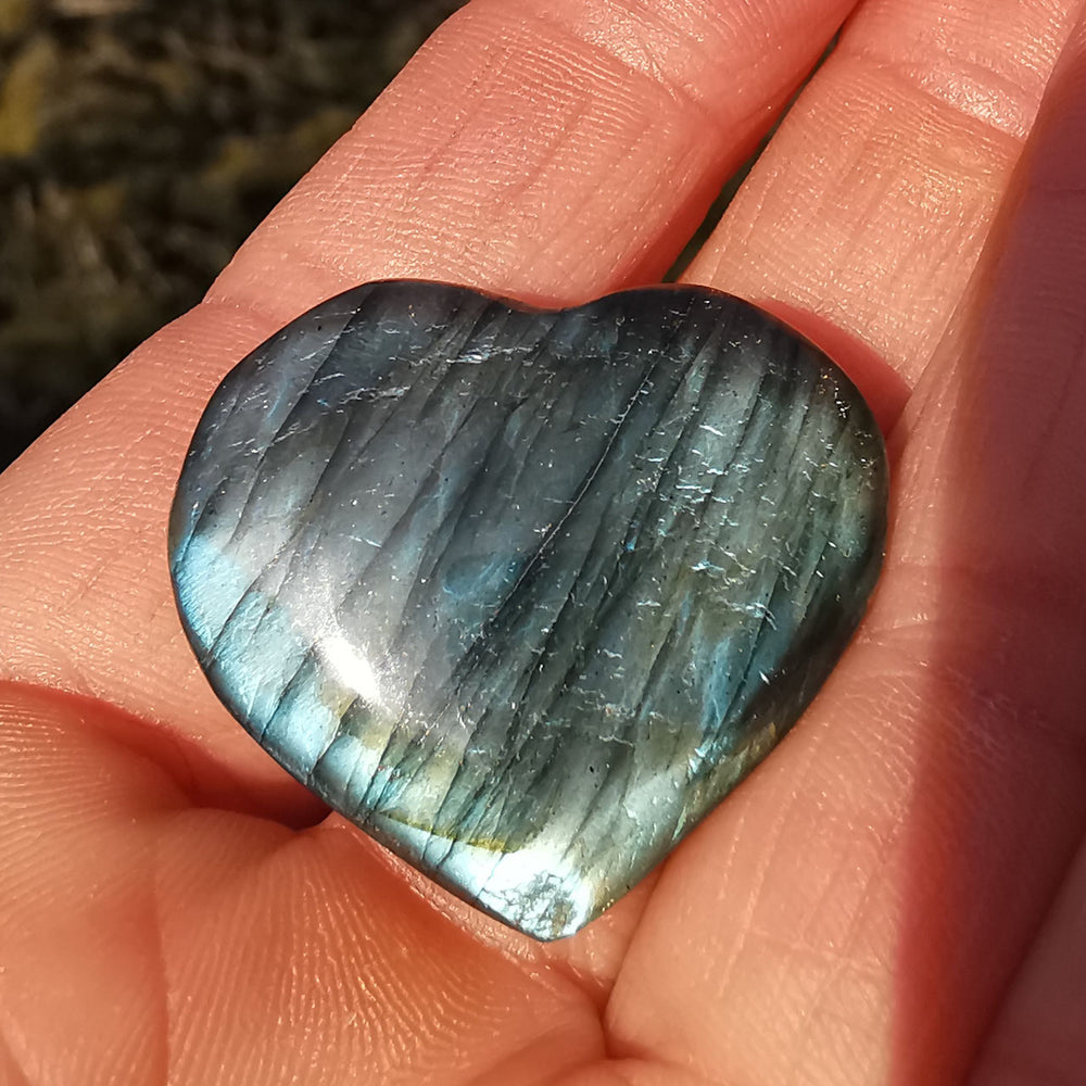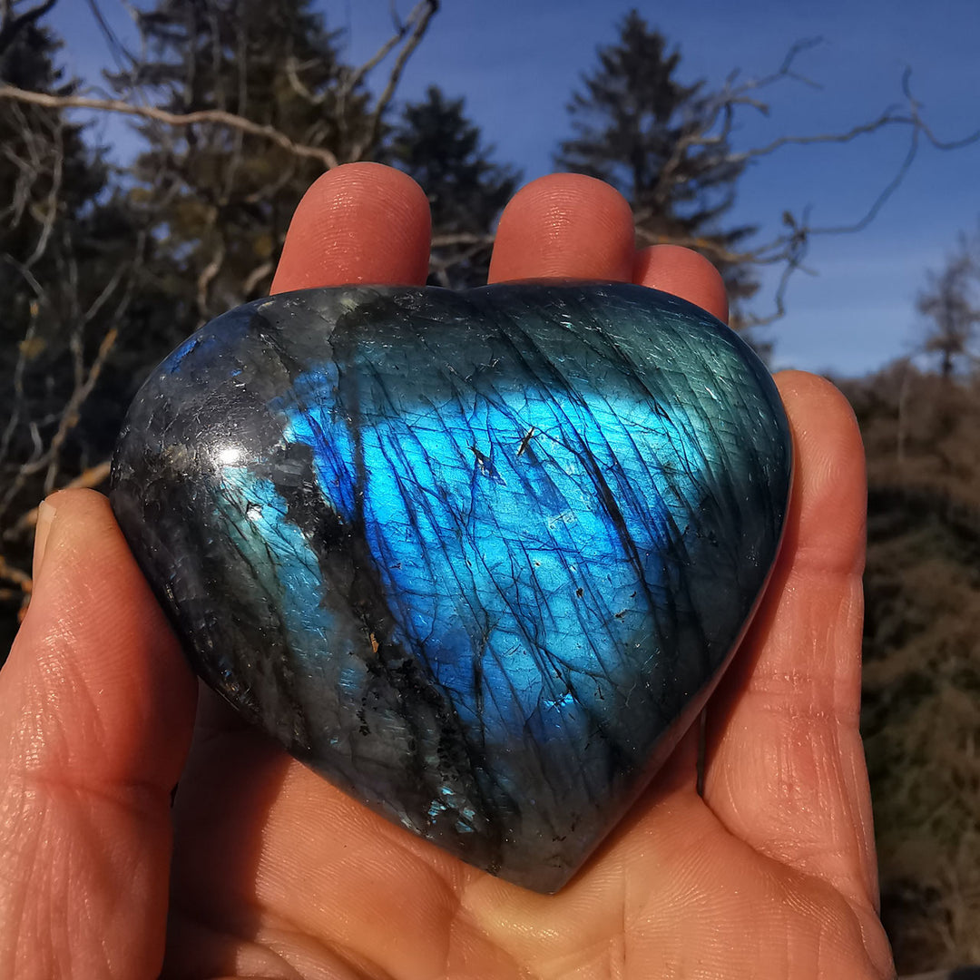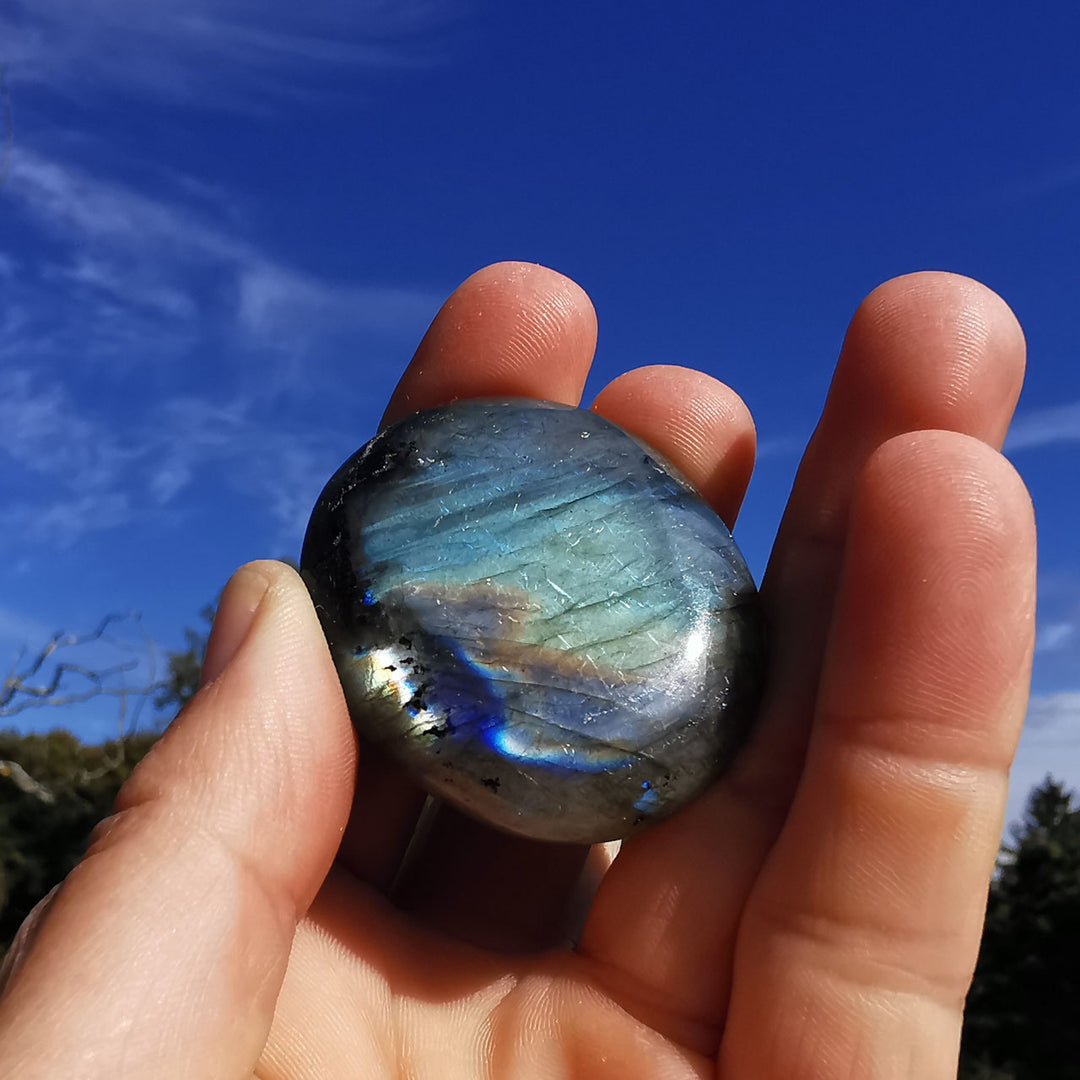Labradorit öffnet uns die Augen für unsere wahre Identität, stärkt die Intuition und die Medialität. Sein buntes, wechselhaftes Farbenspiel und seine Anwesenheit im Raum fördert Kreativität, Begeisterungsfähigkeit, Phantasie und Ideenfülle. Er schützt vor Energieräubern, vermag aber auch psychische Angriffe abzuwenden, wenn andere negative Emotionen gegen einem verwenden. Er reinigt und schützt zudem die Aura und hilft wenn nötig dabei das Herzschakra abzuschirmen.und öffnet uns für die Erkenntnis, dass auch der Mensch ein Lichtwesen ist.