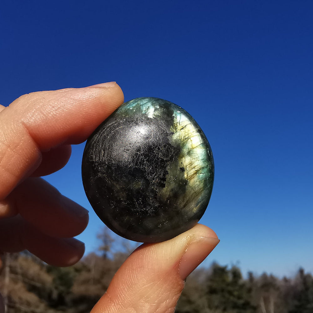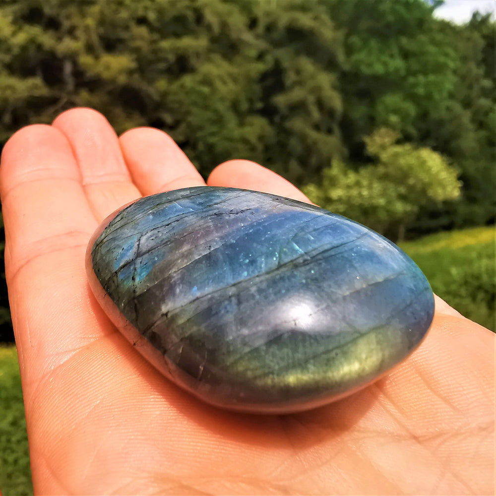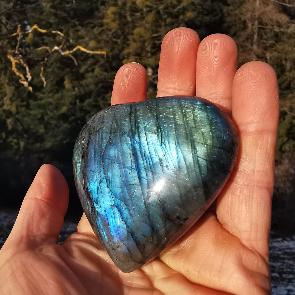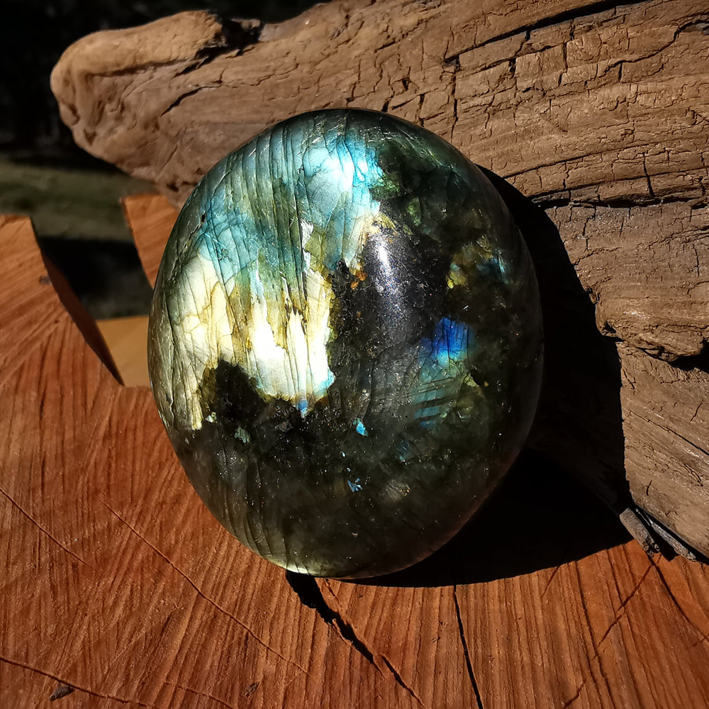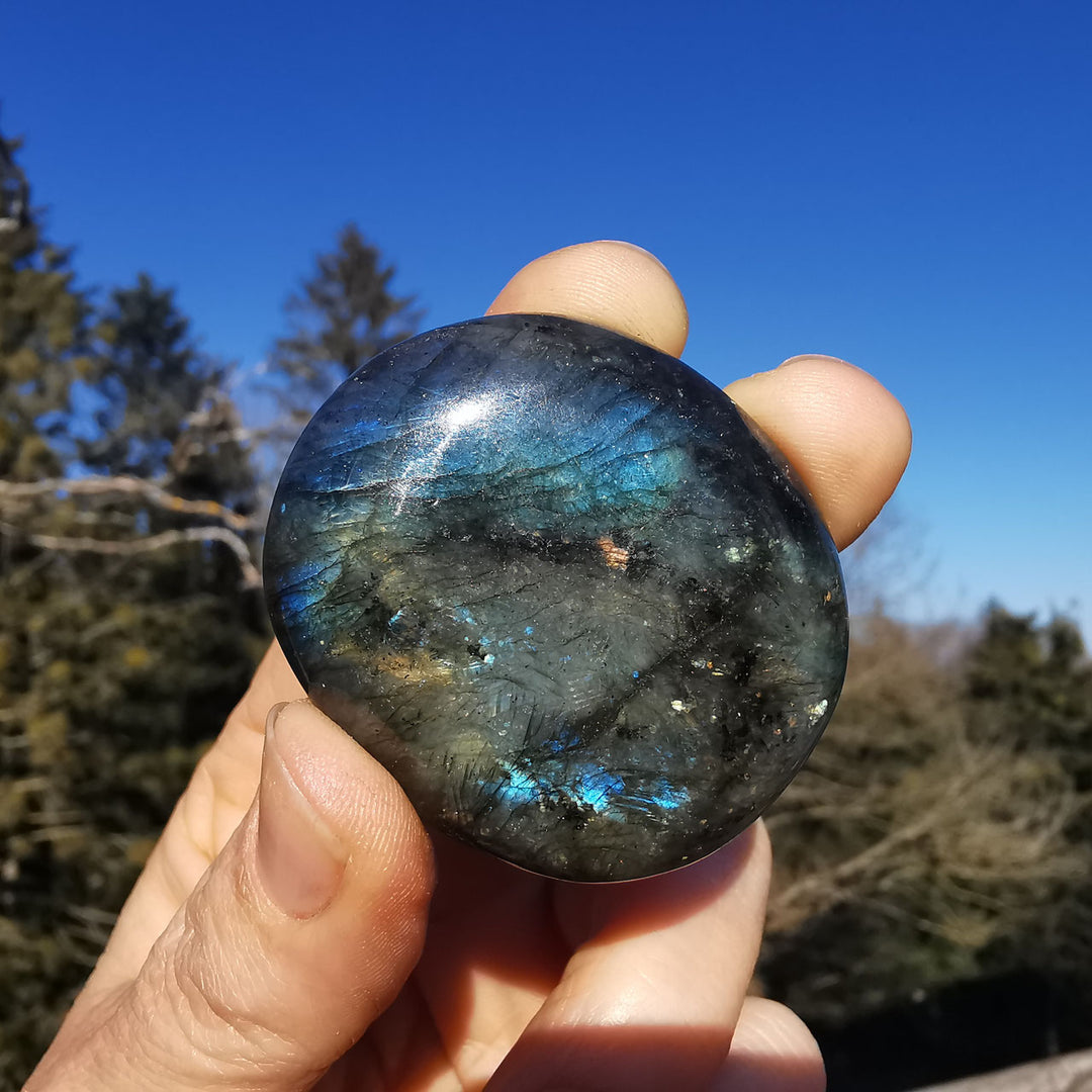 Labradorit öffnet uns die Augen für unsere wahre Identität, stärkt die Intuition und die Medialität. Sein buntes, wechselhaftes Farbenspiel und seine Anwesenheit im Raum fördert Kreativität, Begeisterungsfähigkeit, Phantasie und Ideenfülle. Er schützt vor Energieräubern, vermag aber auch psychische Angriffe abzuwenden, wenn andere negative Emotionen gegen einem verwenden. Er reinigt und schützt zudem die Aura und hilft wenn nötig dabei das Herzschakra abzuschirmen.und öffnet uns für die Erkenntnis, dass auch der Mensch ein Lichtwesen ist.