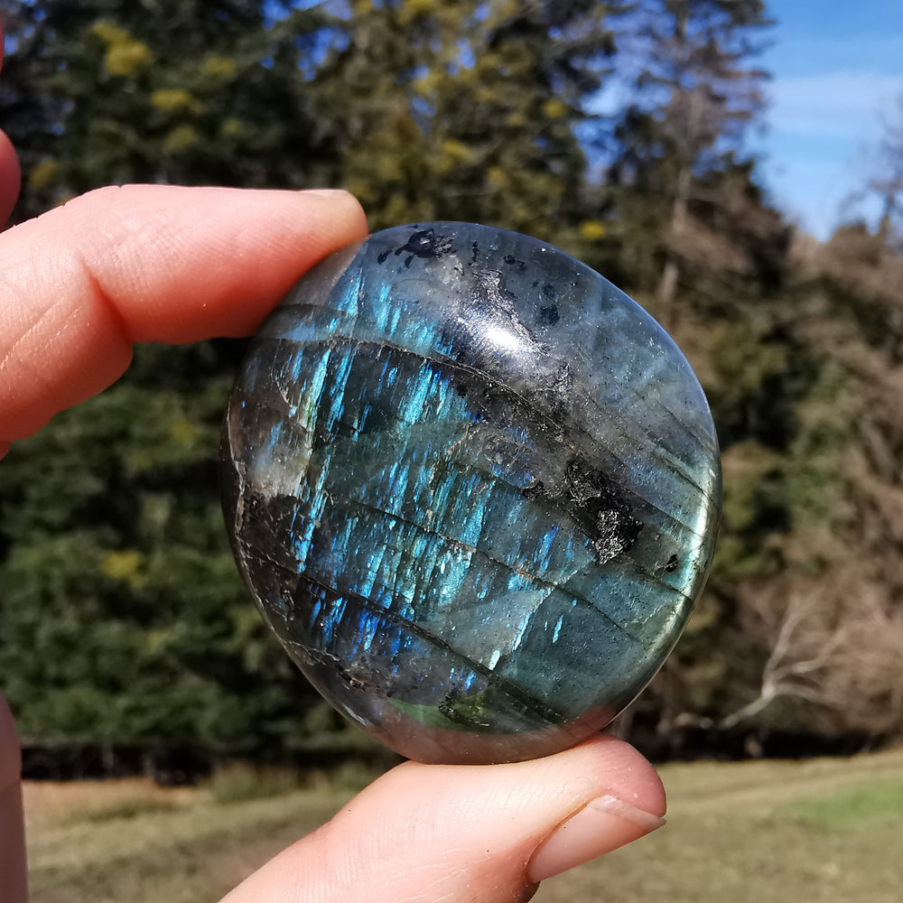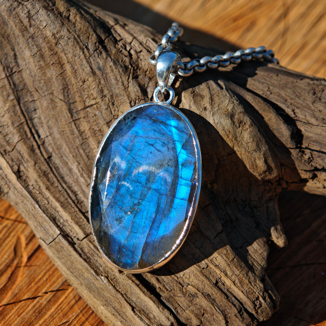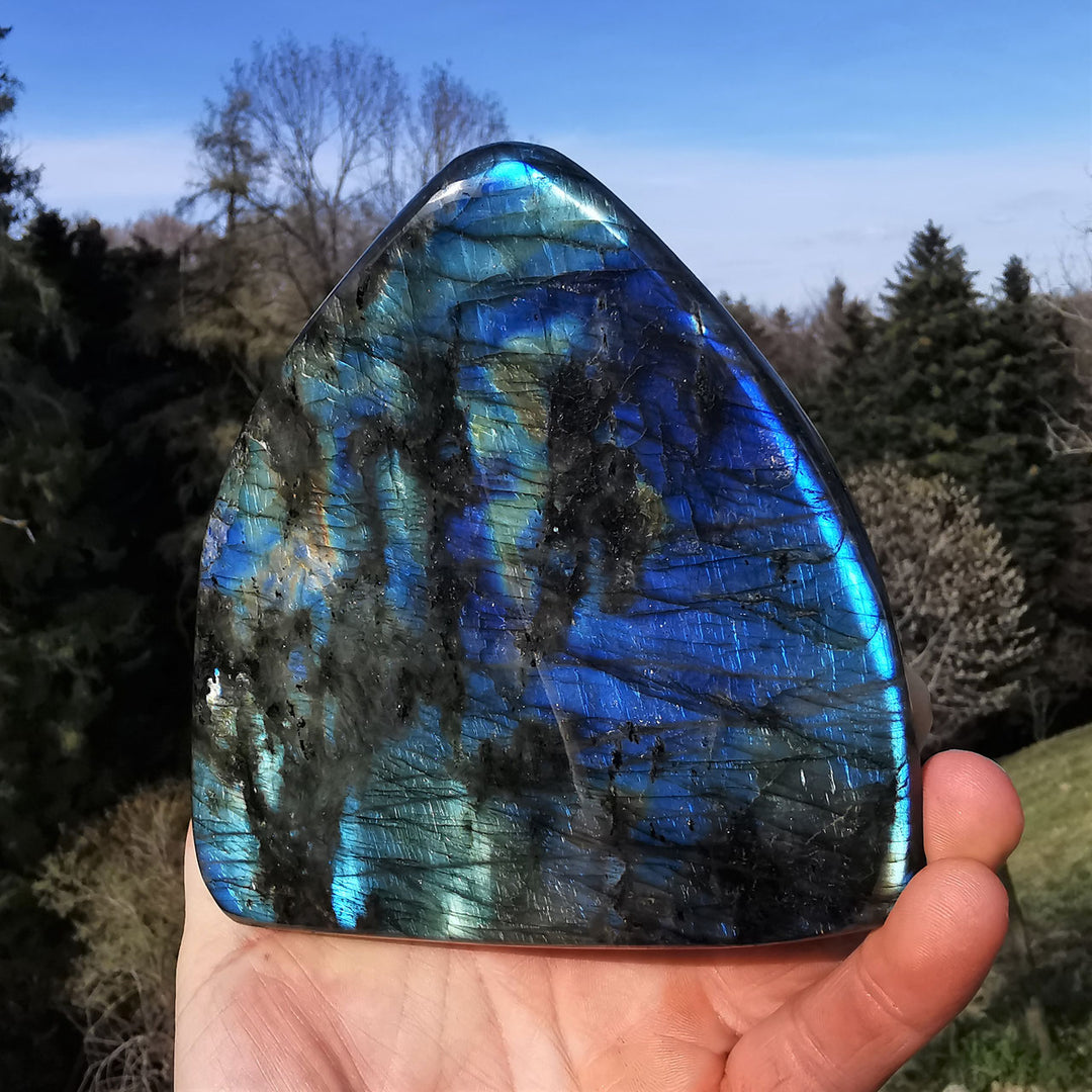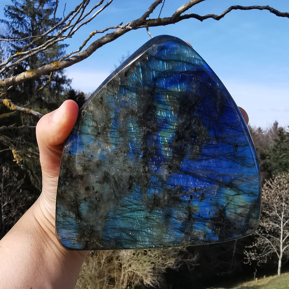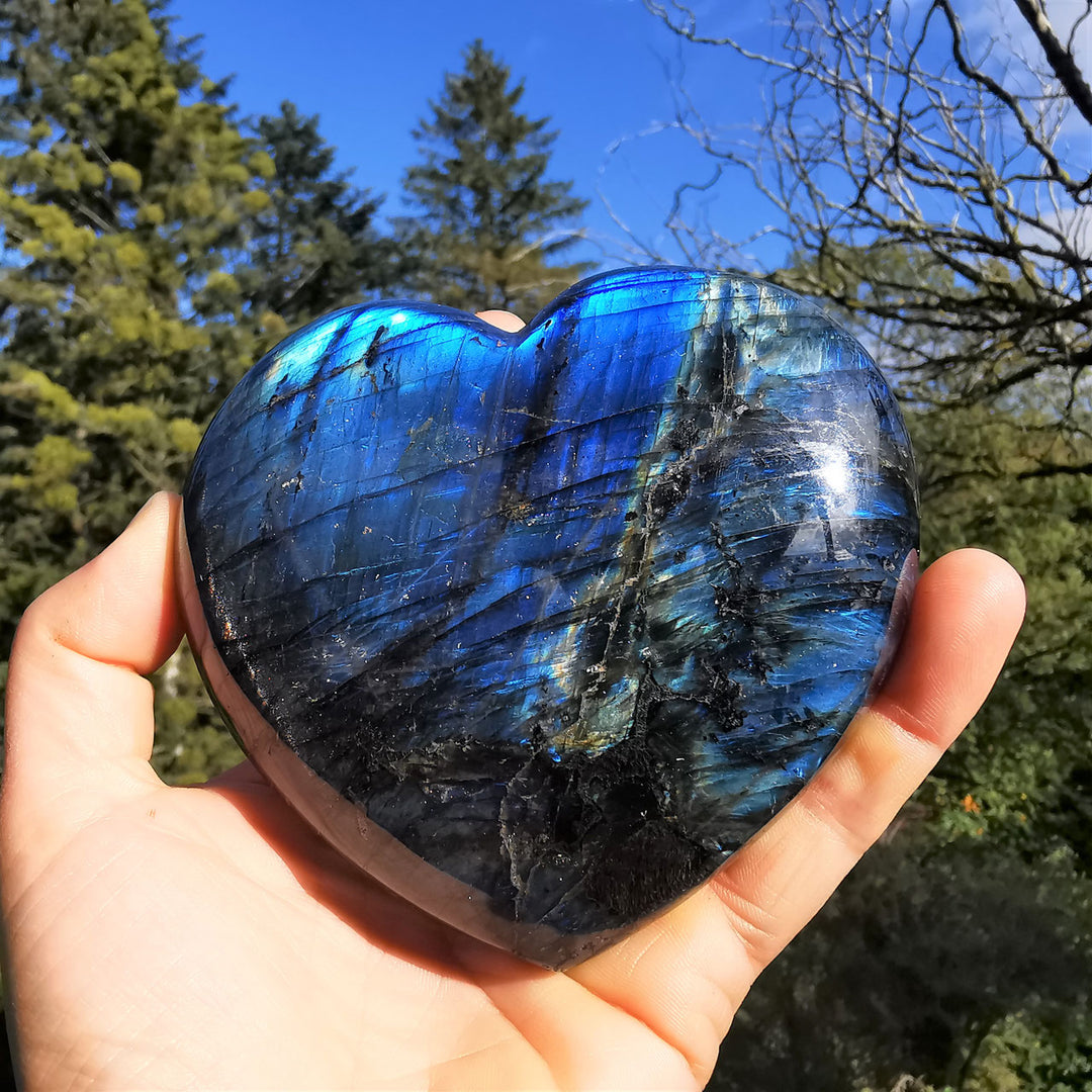 Labradorit öffnet uns die Augen für unsere wahre Identität, stärkt die Intuition und die Medialität. Sein buntes, wechselhaftes Farbenspiel und seine Anwesenheit im Raum fördert Kreativität, Begeisterungsfähigkeit, Phantasie und Ideenfülle. Er schützt vor Energieräubern, vermag aber auch psychische Angriffe abzuwenden, wenn andere negative Emotionen gegen einem verwenden. Er reinigt und schützt zudem die Aura und hilft wenn nötig dabei das Herzschakra abzuschirmen.und öffnet uns für die Erkenntnis, dass auch der Mensch ein Lichtwesen ist.