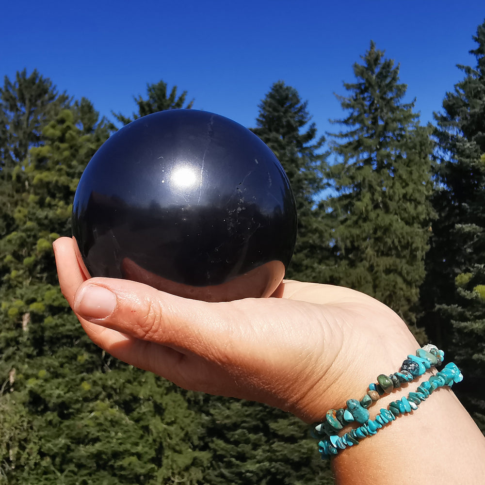 Schungit gilt als einer der stärksten Heilsteine. Er soll vor elektromagnetischer Strahlung (EMF) schützen, Stress reduzieren und innere Ruhe fördern. Seine beruhigende Energie unterstützt klares Denken, mindert Ängste und kann zu erholsamem Schlaf beitragen.