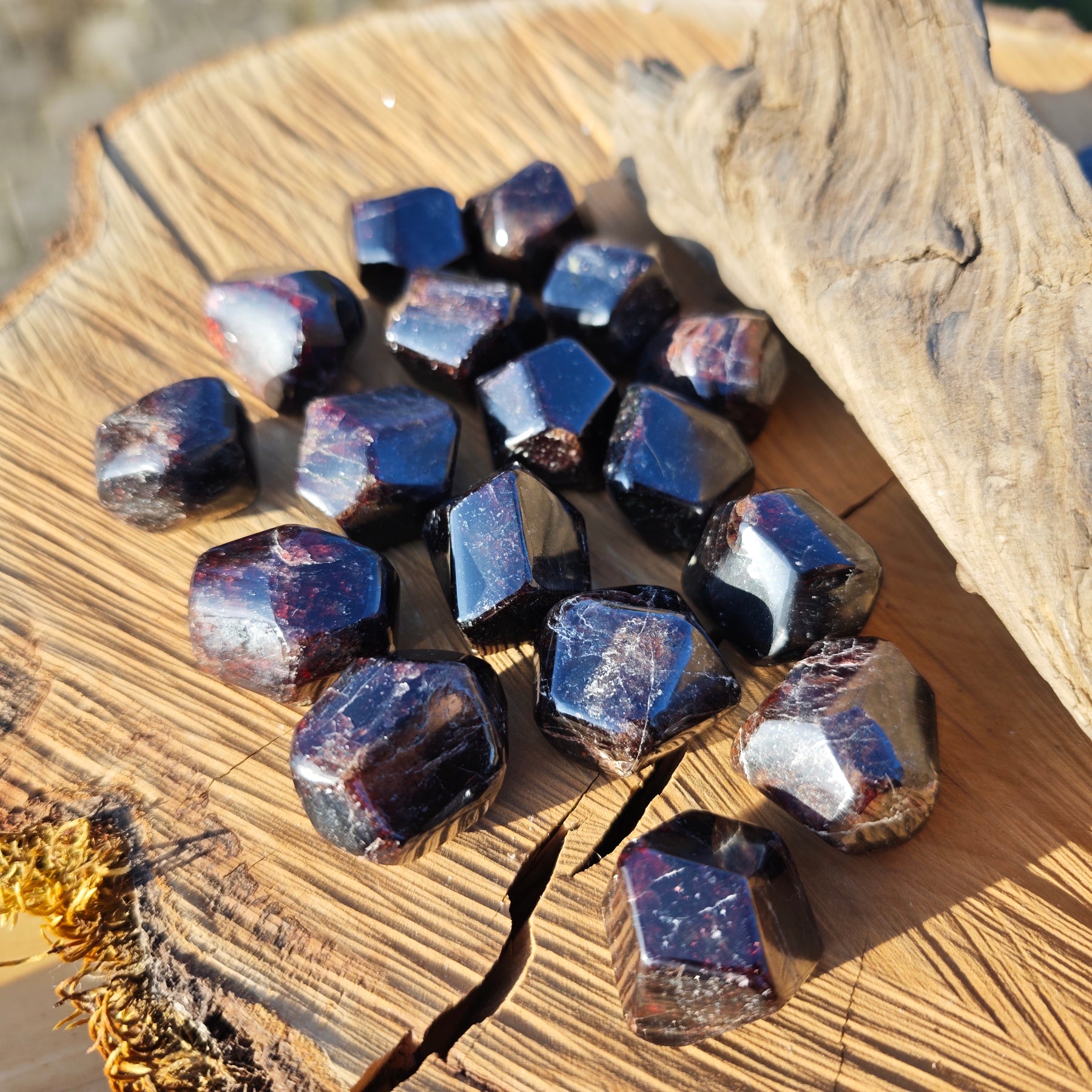 Natürlich gewachsene Granat-Kristalle, deren Flächen und Kanten liebevoll von Hand poliert wurden, ohne die ursprüngliche natürliche Form zu verändern!