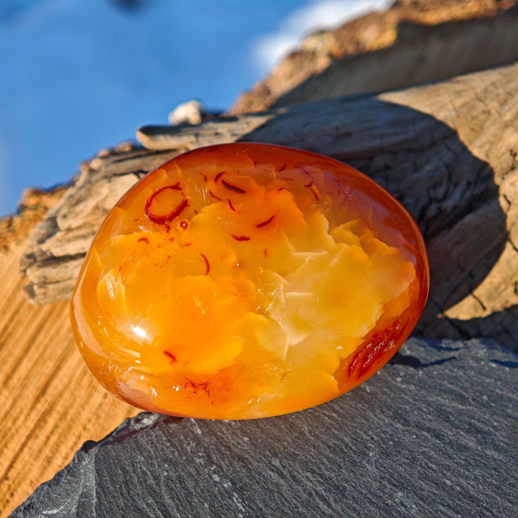 Die Energie des Karneols stärkt die Harmonie im Zuhause. Wenn man sich zurückziehen möchte, schenkt er eine kraftvolle, zugleich jedoch sanfte Schwingung. Seine Botschaft lautet: Da wir im Kern Liebe sind, können wir auch nur Liebe weitergeben – und empfangen dadurch selbst mehr Liebe.