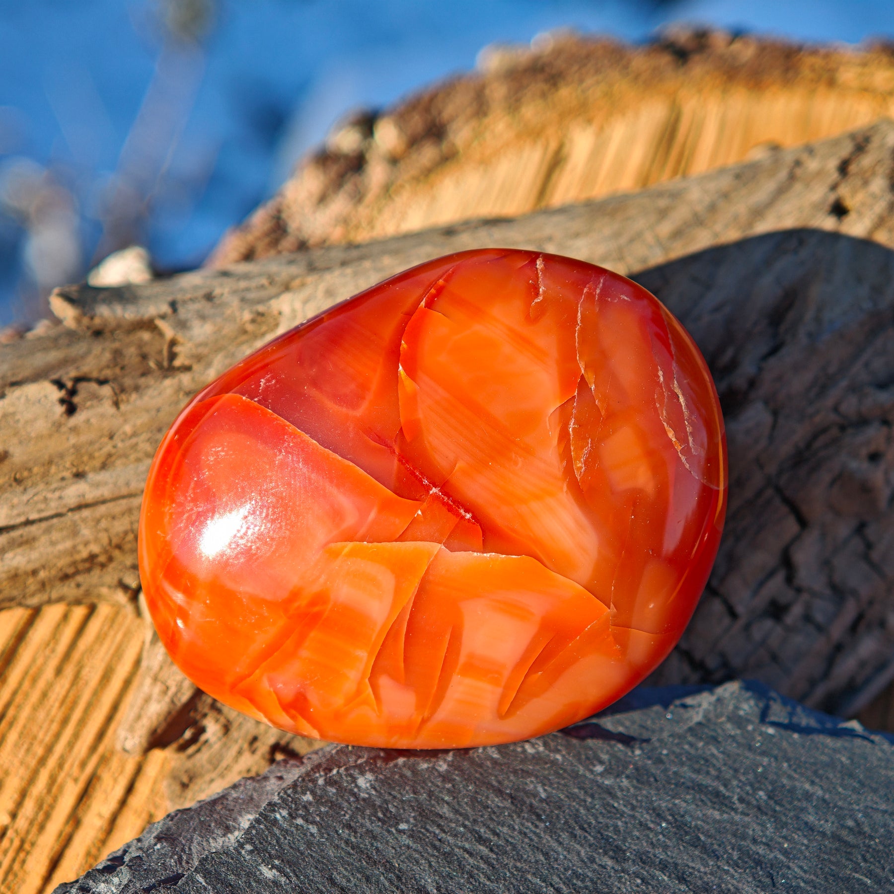 Die Energie des Karneols stärkt die Harmonie im Zuhause. Wenn man sich zurückziehen möchte, schenkt er eine kraftvolle, zugleich jedoch sanfte Schwingung. Seine Botschaft lautet: Da wir im Kern Liebe sind, können wir auch nur Liebe weitergeben – und empfangen dadurch selbst mehr Liebe.